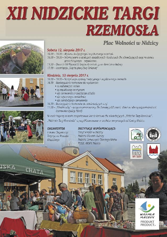 W dniach 12-13 sierpnia 2017 roku na nidzickim rynku odbywały się Nidzickie Targi Rzemiosła podczas których było gwarno i wesoło, były współfinansowane ze środków otrzymanych od Gminy Nidzica.